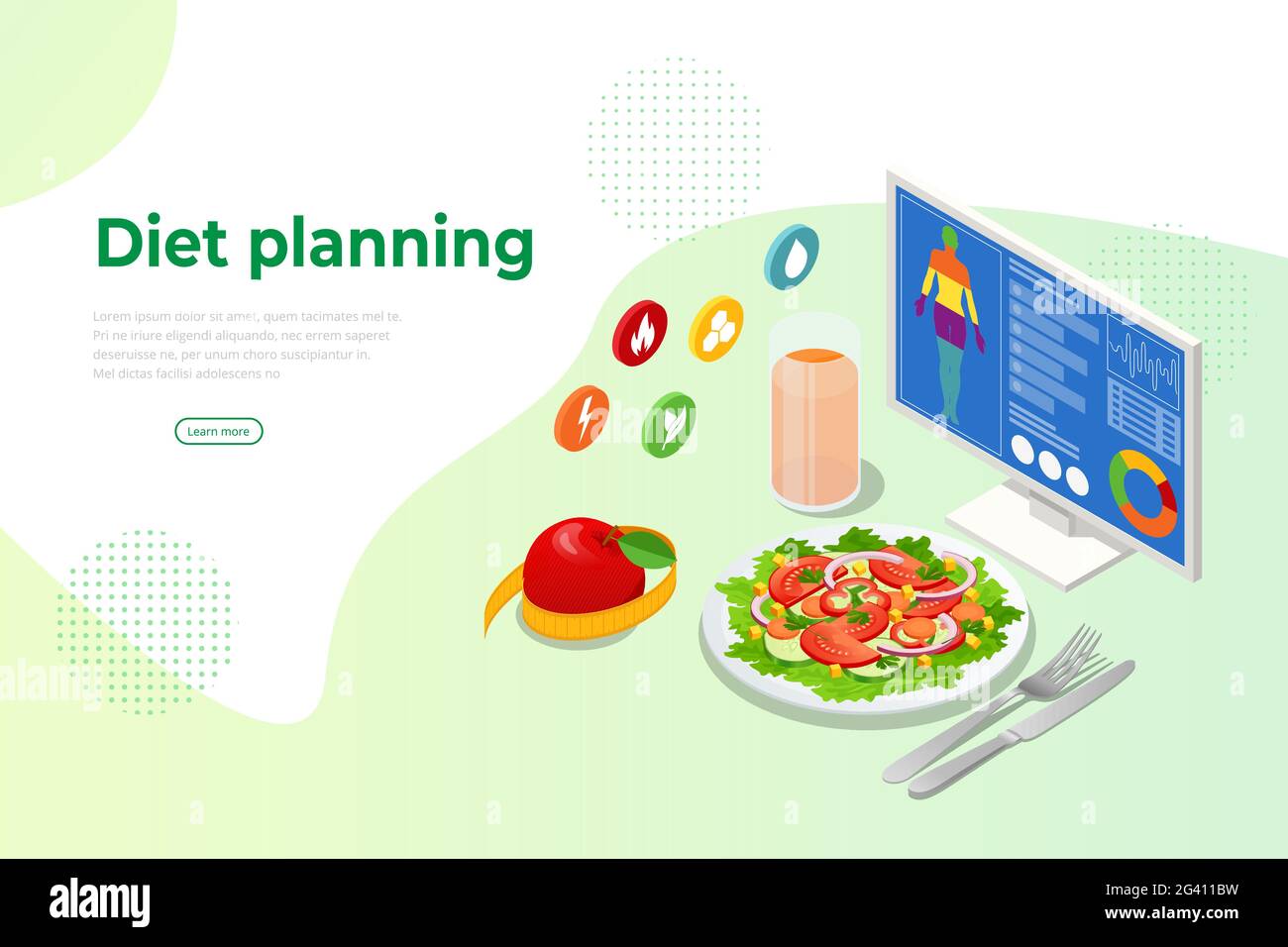 Isometric Healthy Food And Diet Planning Concept Healthy Eating Personal Diet Or Nutrition Plan From Dieting Expert Stock Illustration Illustration Of Plan Program 211774543